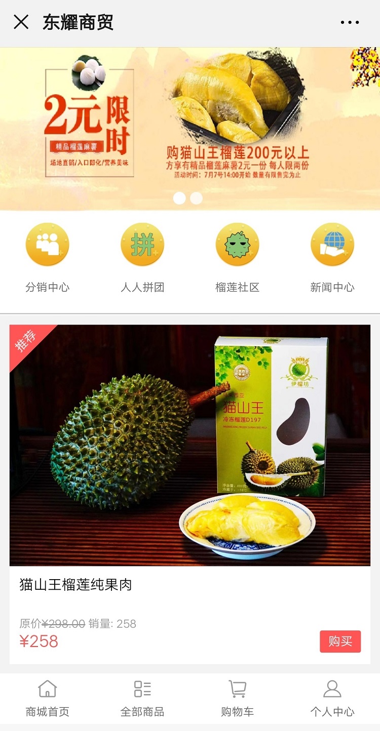 一家专营马来西亚进口猫山王榴莲的水果贸易企业